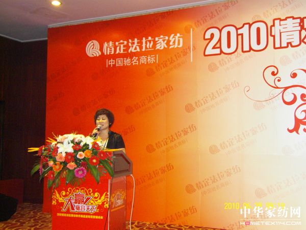 情定法拉蒋建华董事长作为企业的领航人,在这次发言中讲到,公司将奉献给他敬爱的经销商和加盟店更 优质的产品及服务,也希望大家伴随情定法拉共同成长,走向更明媚的未来。